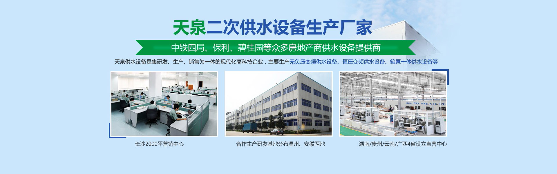 長(zhǎng)沙天泉供水設(shè)備有限公司位于長(zhǎng)沙雨花經(jīng)濟(jì)開發(fā)區(qū)。公司是集研發(fā)、生產(chǎn)、銷售為一體的現(xiàn)代化科技型企業(yè)公司生產(chǎn)銷售的產(chǎn)品有無(wú)負(fù)壓變頻供水設(shè)備、自來水加壓泵站、變頻調(diào)速恒壓供水設(shè)備、智慧標(biāo)準(zhǔn)泵房、智慧水務(wù)、一體化預(yù)制泵站、循環(huán)水系統(tǒng)工程等二十幾大類別。